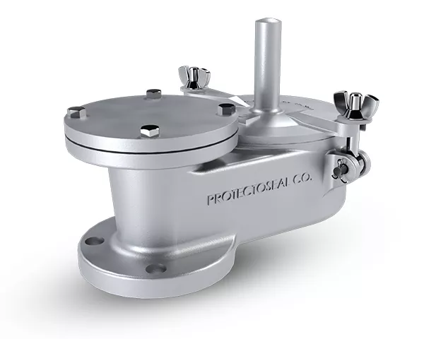 Protectoseal Series 6240 Vacuum Relief Vent is intended for use where only vacuum relief is required. A pallet in the vent housing retards air intake as the tank normally breathes in due to atmospheric temperature changes or emptying of the tank. The pallet opens and closes to permit only that intake relief necessary to avoid tank damage under normal operating conditions. Series 16240 offers a side mounted connection.