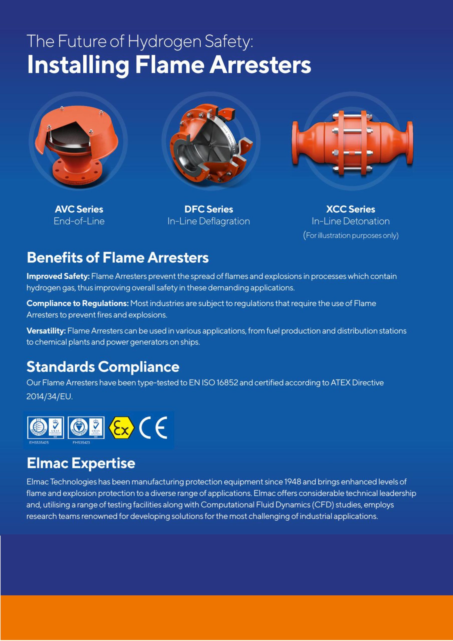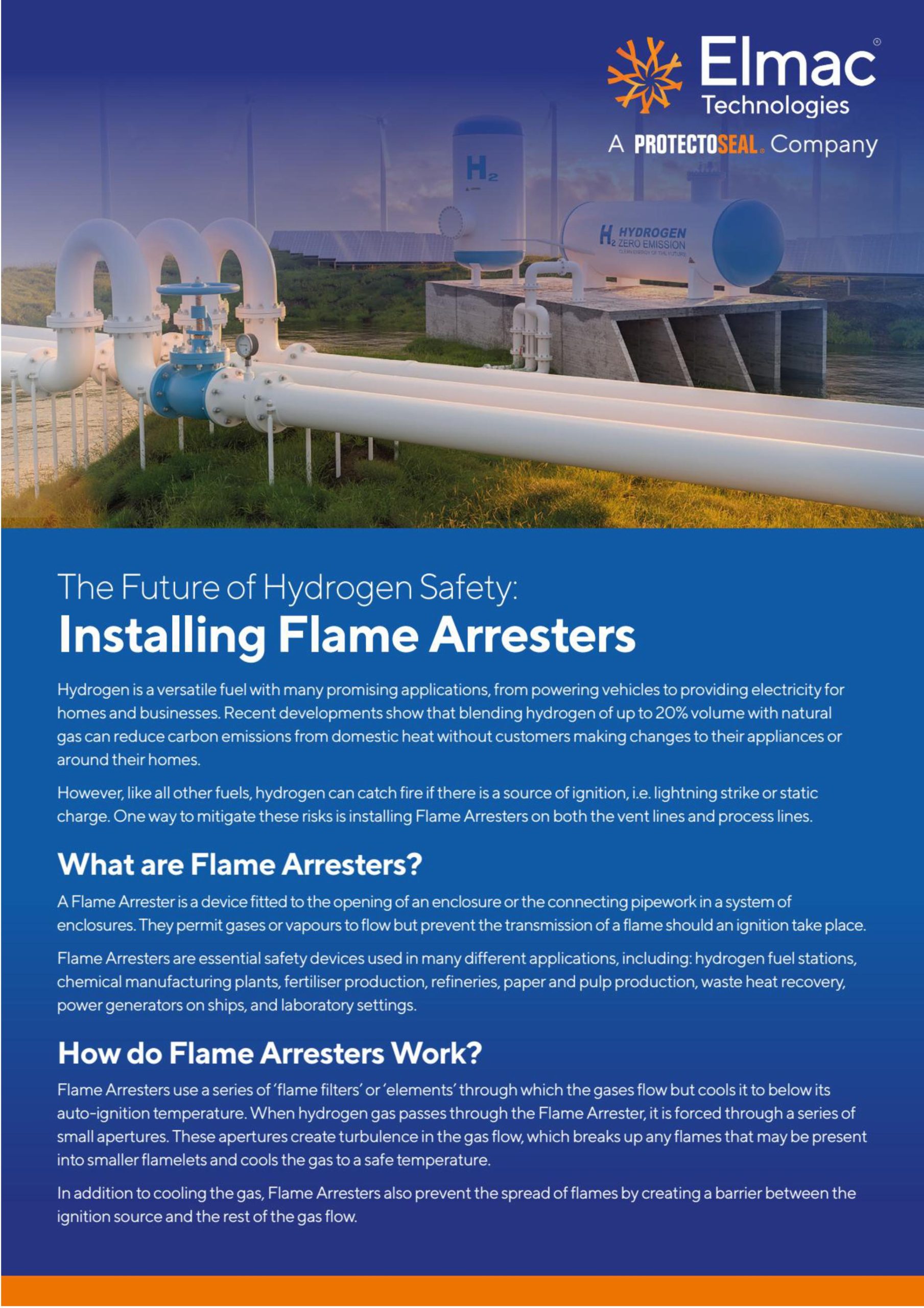 Echter, net als alle andere brandstoffen, kan waterstof vlam vatten als er een ontstekingsbron is, zoals een blikseminslag of een statische lading. Een manier om deze risico's te beperken is het installeren van vlammendovers op zowel de ontluchtingsleidingen als de procesleidingen.