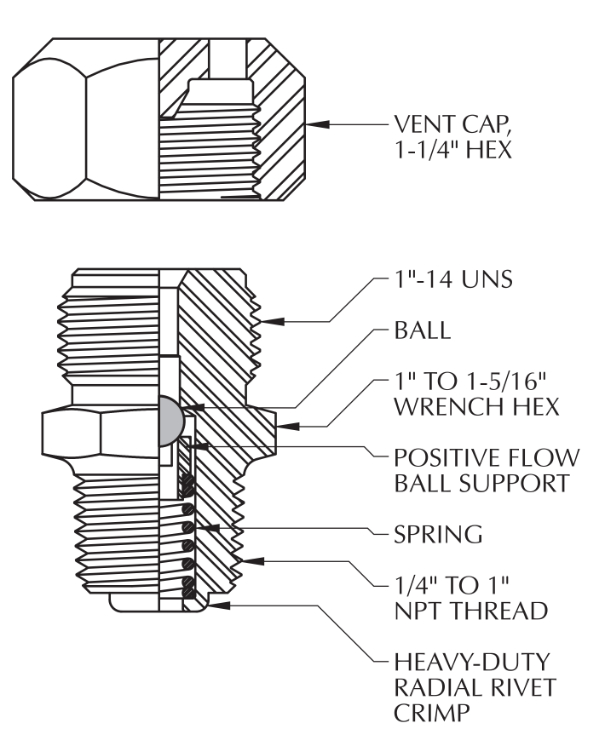 Designed with single ball check that provides the primary seal while the vented cap is the secondary seal to retard corrosion of the fitting face.