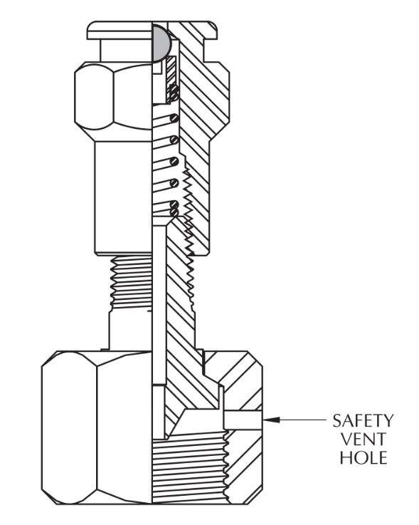 Caution: When disconnecting, trapped pressure is relieved through vent hole in the nut. If this poses a concern, please see #2 style adapter.